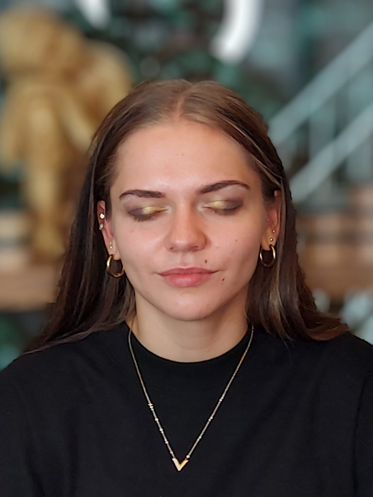 Marjon, een 22-jarige vrouw, heeft een mooie, gezonde huid die een uitstekende basis vormde voor deze make-up look. Haar huid was egaal en goed gehydrateerd, wat zorgde voor een vlotte applicatie van de producten. Hieronder volgt een beschrijving van de toegepaste make-up