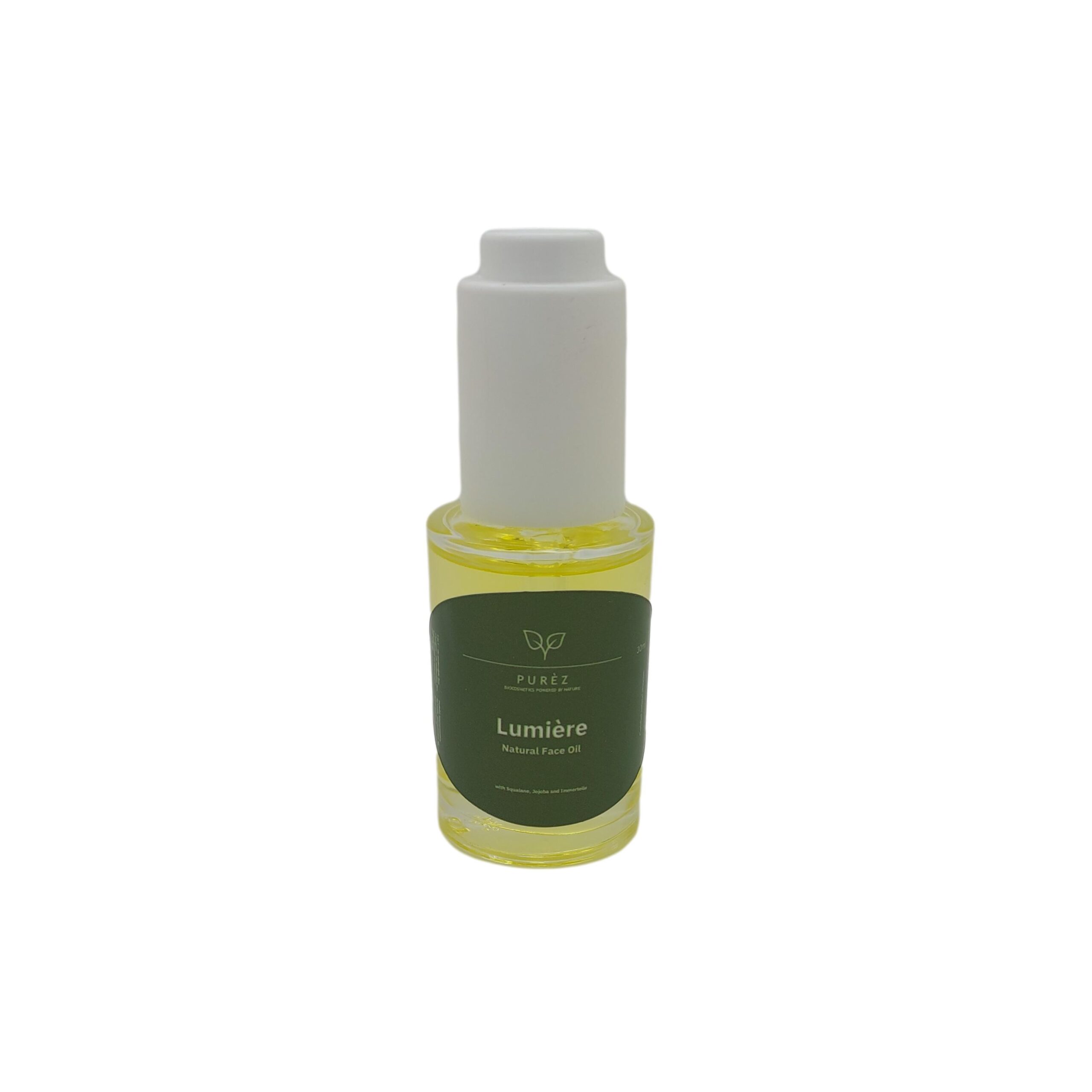 Ontdek Lumiére Gezichtsolie van Purèz, een luxueuze mix verrijkt met Squaleen als belangrijkste ingrediënt. Deze exquise olie is zorgvuldig samengesteld om de elasticiteit, soepelheid en gladheid van je huid te verbeteren, en geeft een stralende, natuurlijke gloed zonder vettige resten achter te laten. Speciaal ontwikkeld om onze minerale make-uprange aan te vullen, is Lumiére Gezichtsolie bijzonder geschikt voor de droge huid.