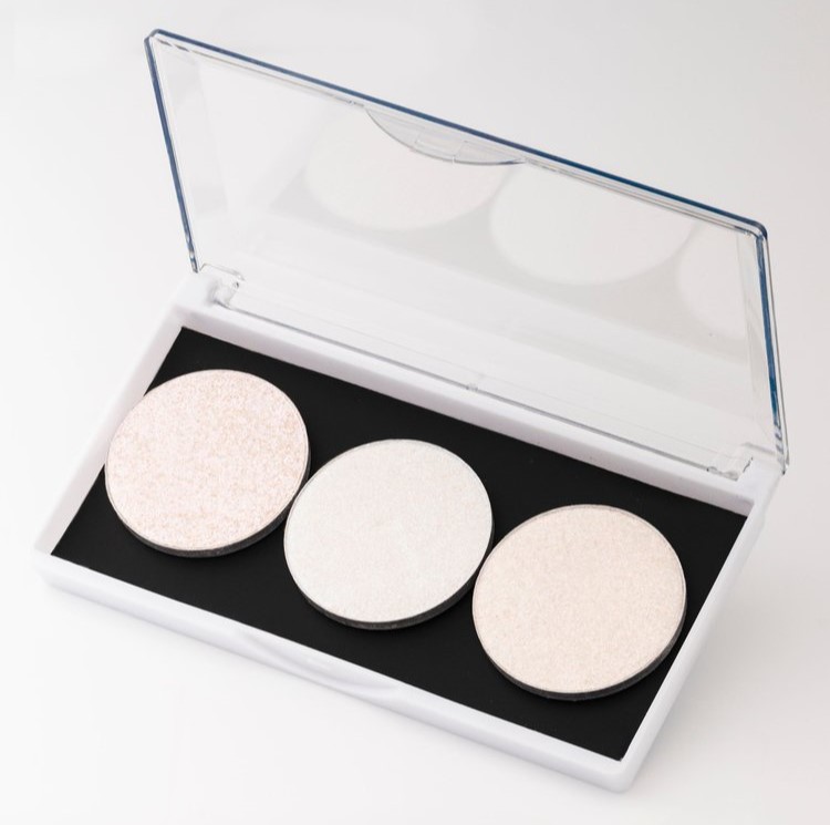 - Ronde pannetjes: 3 x 36mm (geschikt voor Puréz oogprimers, crème blushers en bronzers).